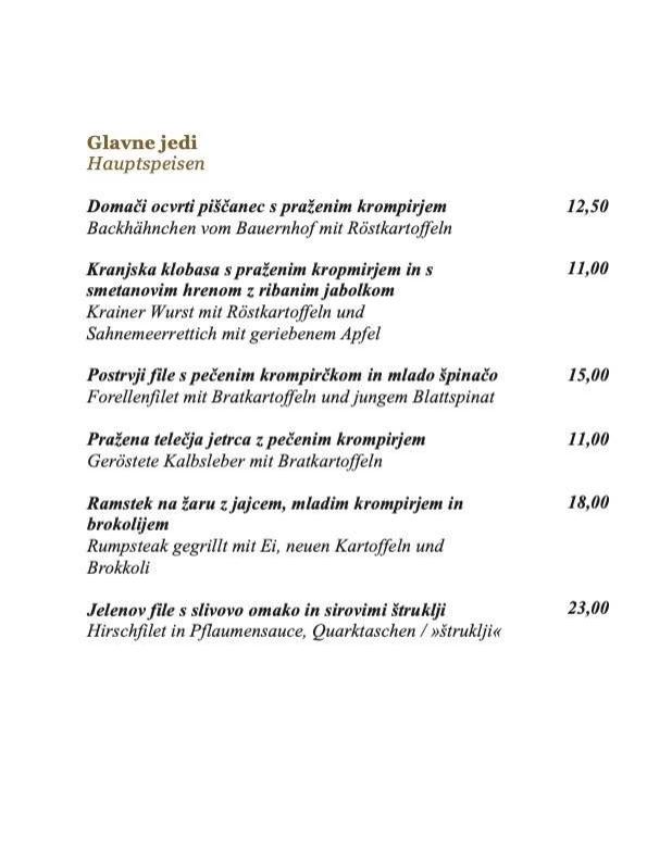 Kulinarische Schmankerl im Gasthaus Avsenik / "PRI JOŽOVCU",