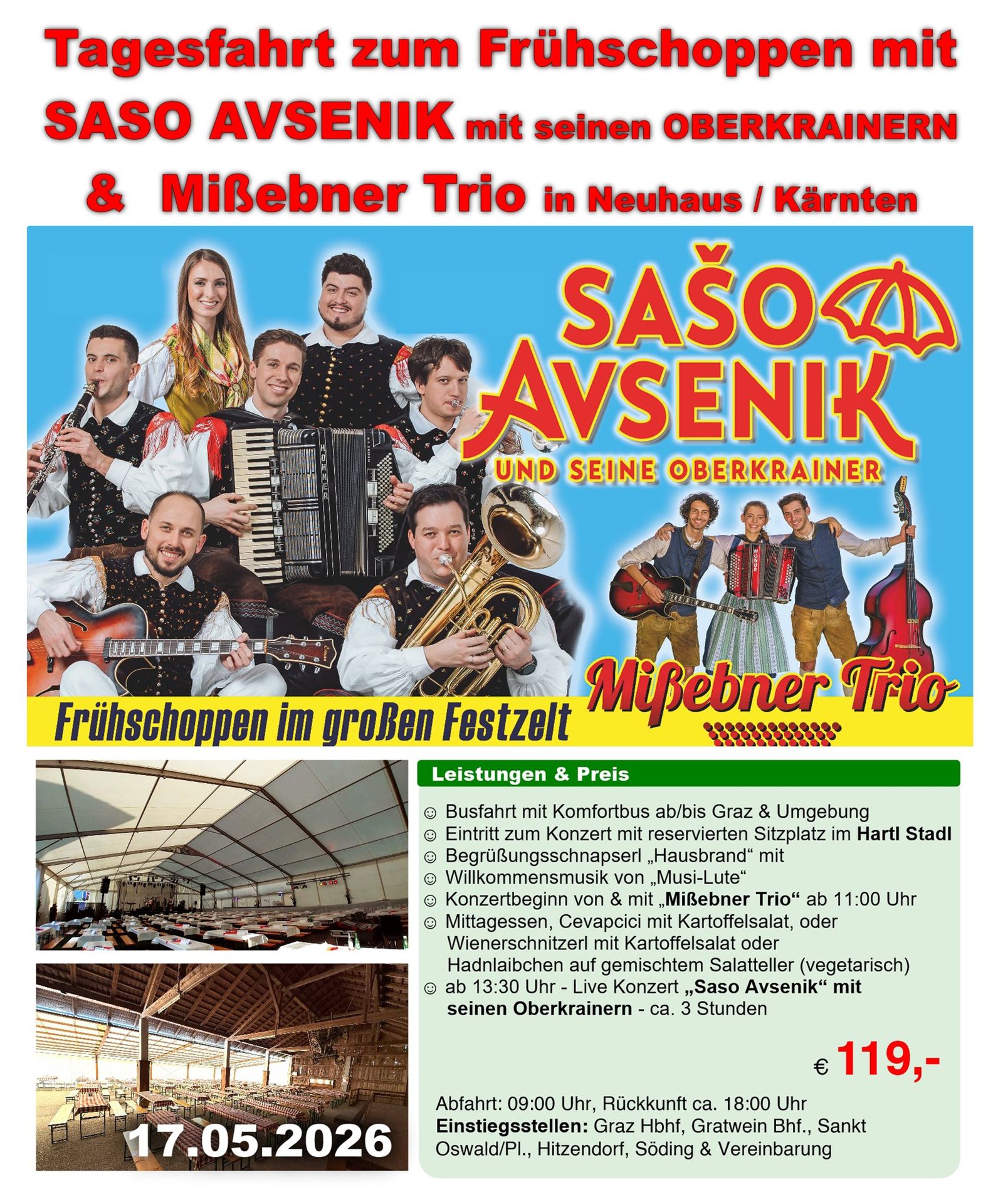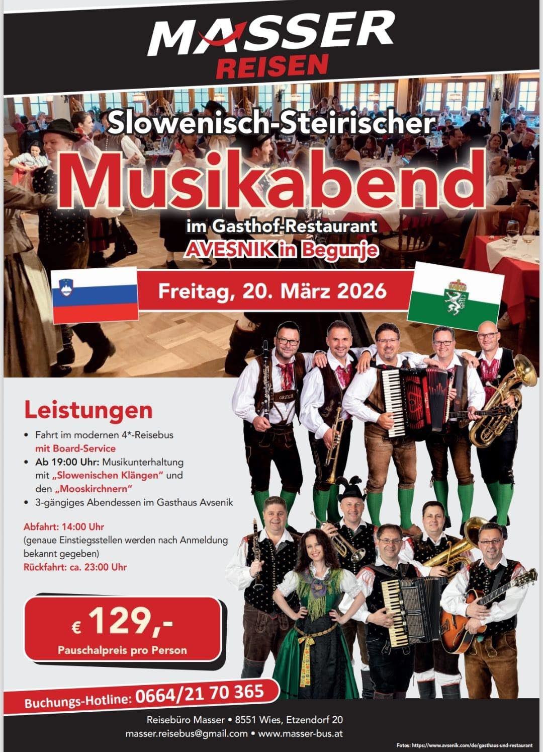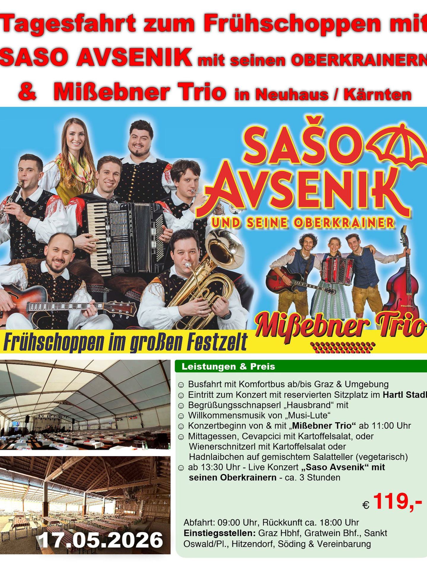 Selbstfahrer können Tisch.- & Eintrittskarten NUR im Gasthaus Avsenik reservieren www.avsenik.com