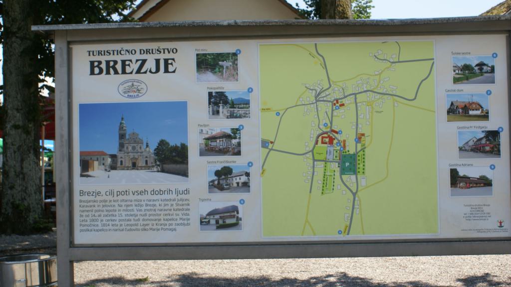 Aus Brezje führt der Wanderweg, genannt Friedensweg, zu den zwei Peračica-Wasserfällen. Angelegt sind auch zwei Pilgerwege: der Rosenkranzweg und der Pilgerweg Otoče–Brezje.