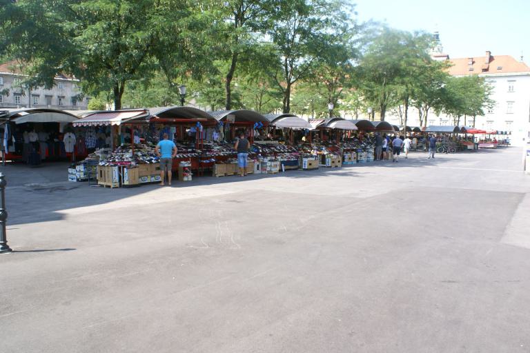 Der Zentralmarkt umfasst die Außenflächen für Marktstände (Platz Vodnikov und Pogačarjev trg), die Markthalle zwischen beiden Plätzen sowie die Markthallen am Fluss Ljubljanica, ein Werk des großen Architekten Jože Plečnik. Das Angebot des Marktes ergänzen Gasthöfe und Kioske mit Streetfood.