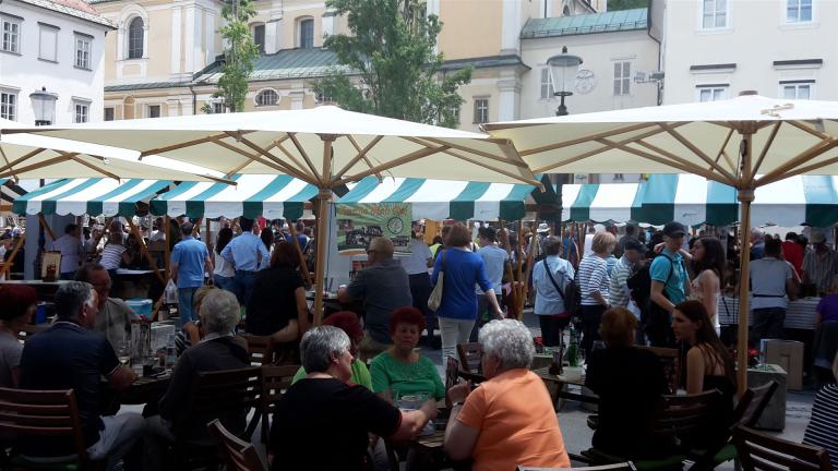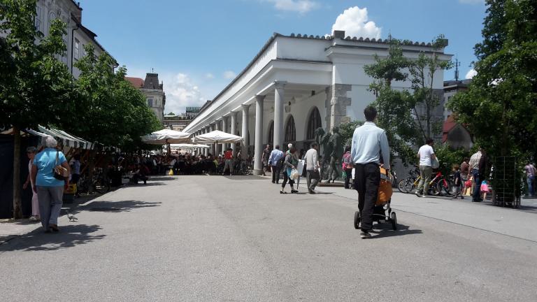 Der Zentrale Marktplatz von Ljubljana ist nicht nur ein Einkaufsort, sondern traditionell auch ein Treffpunkt der Stadtbewohner.